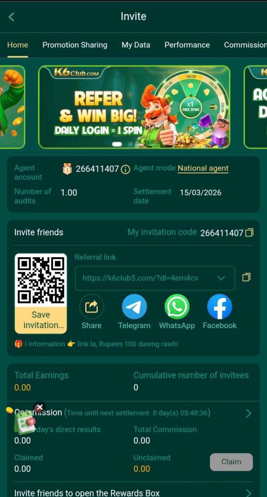 By encouraging friends to play the K6 Club Game, players can receive additional rewards. Users start by sharing their link or referral code. Both the inviter and the friend get bonus points or money when the friend registers and begins playing. In addition to providing users with extra rewards for playing responsibly, this feature promotes social play.