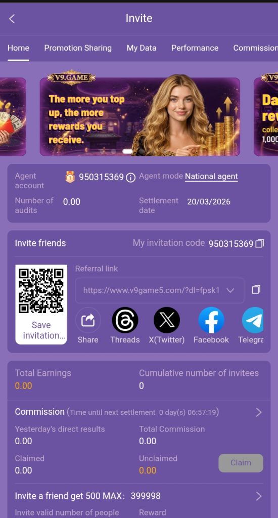 One of the simplest ways to make money without playing too much is through the invite bonus system offered by V9 Game. You first receive a special referral link within the app. After that, you tell your friends about this link. You get a bonus when they sign up with your link and begin playing. You might also occasionally get a small percentage of their gaming activity or deposits. As a result, you can eventually earn more bonuses if you invite more active users. However, it’s important to only invite actual users because dormant or fake accounts might not pay you.