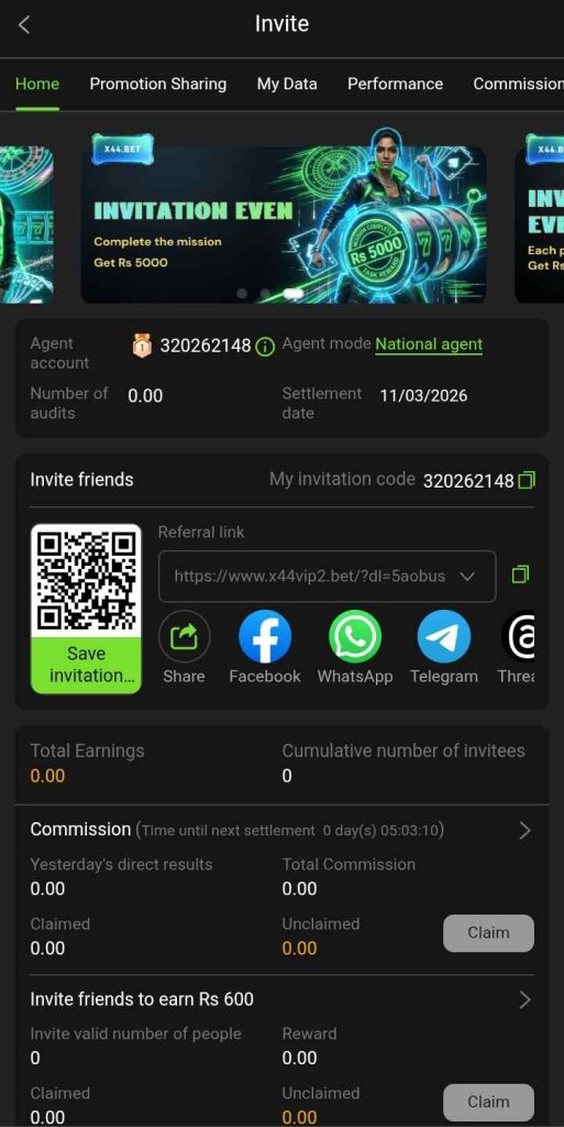 Invite your friends to join X44 Game and enjoy extra benefits through the invite bonus system. When you share your invite link and your friends sign up and start playing, you can receive special bonuses and rewards. It’s an easy way to increase your earnings while playing your favorite slot and card games. The more friends you invite, the greater your chances of earning additional bonuses and making your gaming experience even more rewarding.